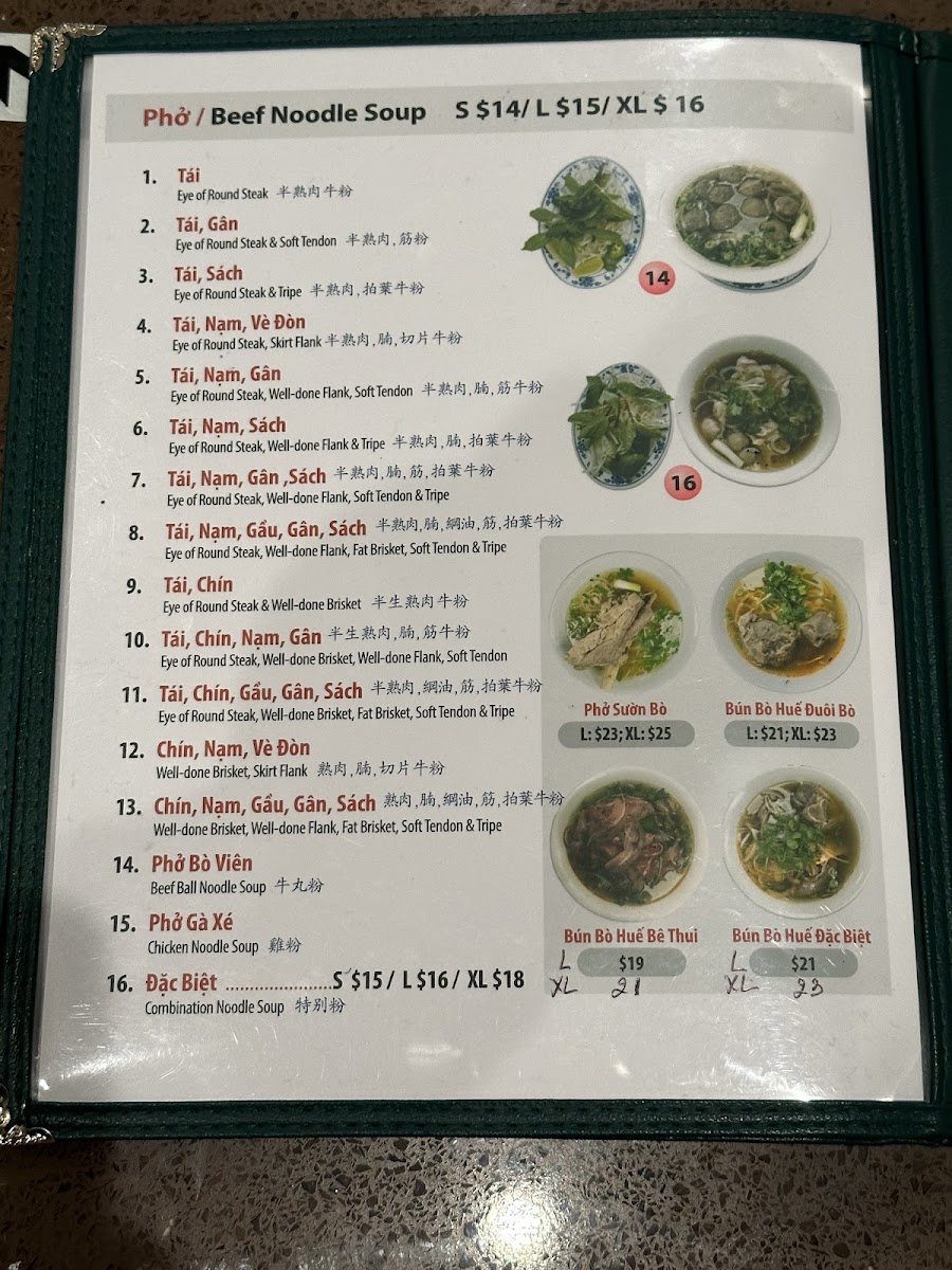 Phở / Beef Noodle Soup S $14/ L $15/ XL $16